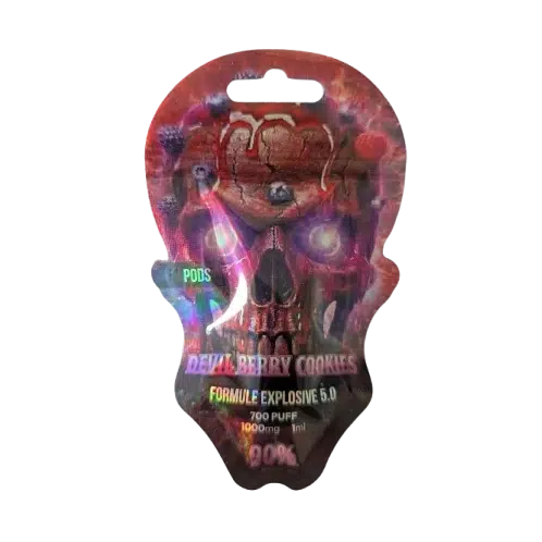 La Devil Berry Cookies 90% dévoile une gourmandise intense entre blueberry et cookie fondant. Un pod puissant qui mêle douceur sucrée et sensations profondes.